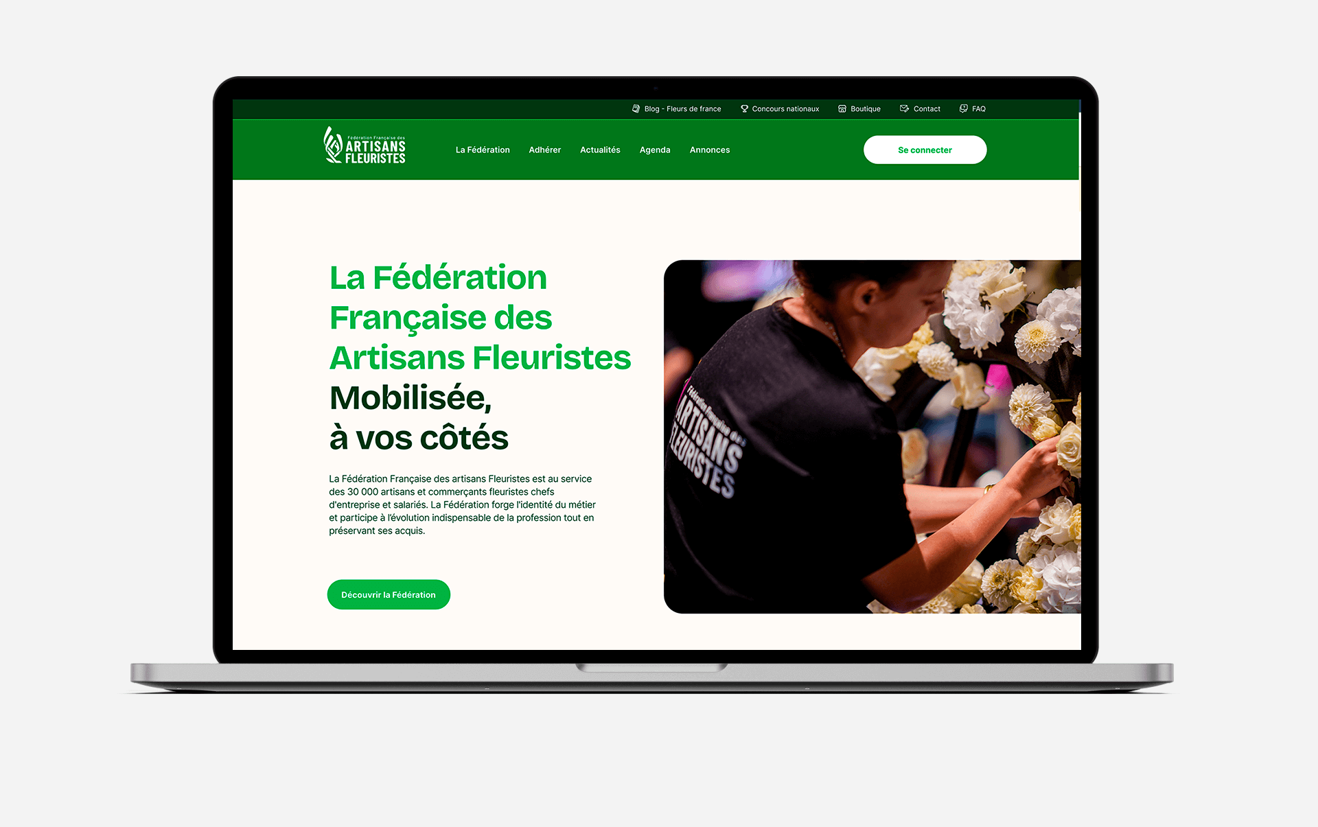 La Fédération Française des Artisans Fleuristes (F.F.A.F.), organisation majoritaire représentative des fleuristes en France, a confié à becom la refonte complète de son site web. L’objectif principal était d’améliorer l’expérience digitale de ses adhérents tout en renforçant son image auprès de l’ensemble de son écosystème. En plaçant l’utilisateur au cœur du projet, nous avons conçu une plateforme moderne, intuitive et fonctionnelle, intégrant notamment un espace réservé aux adhérents pour faciliter l’accès aux ressources et renforcer les interactions au sein de la fédération. Il faut le faire savoir.