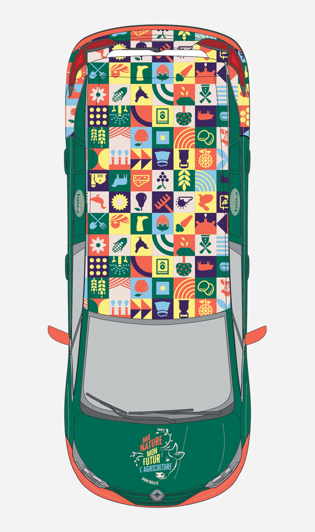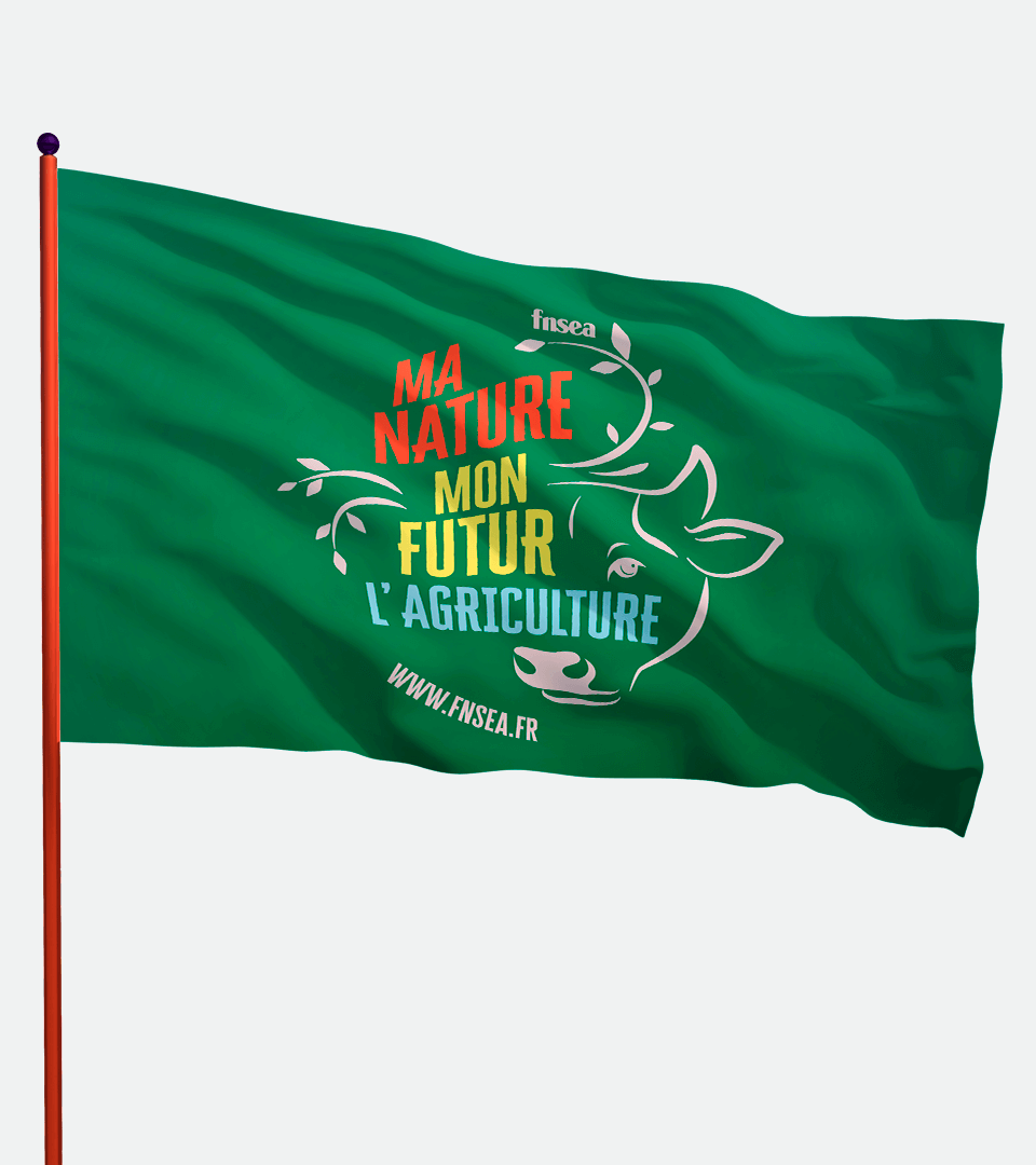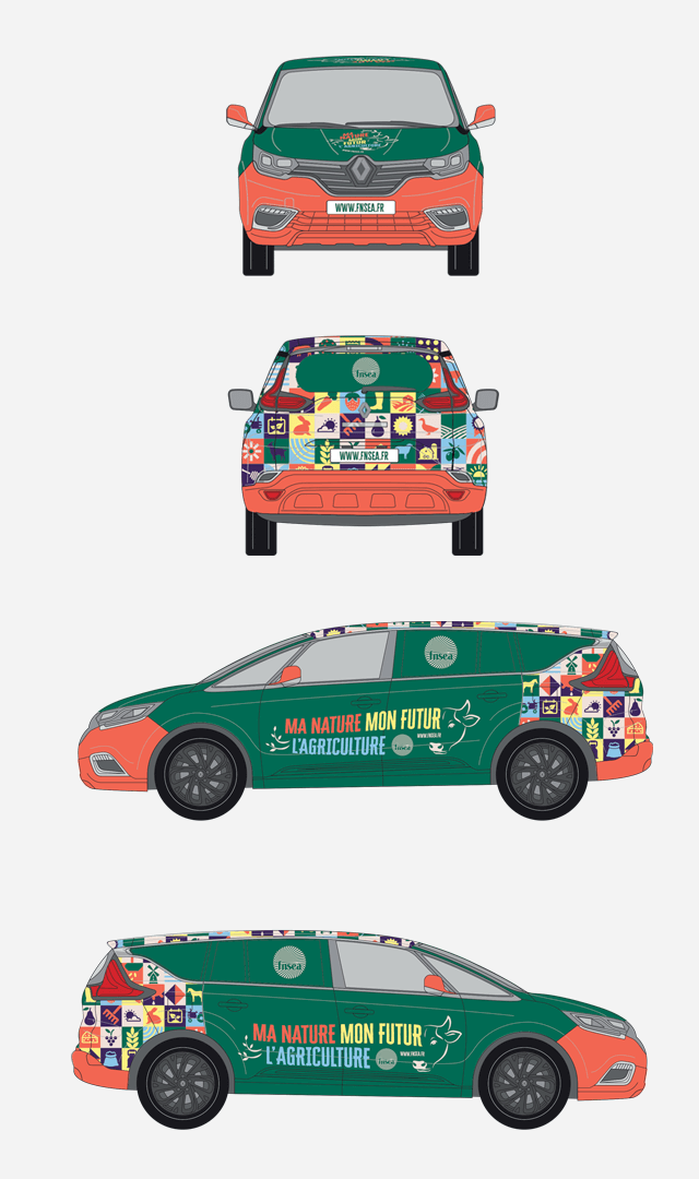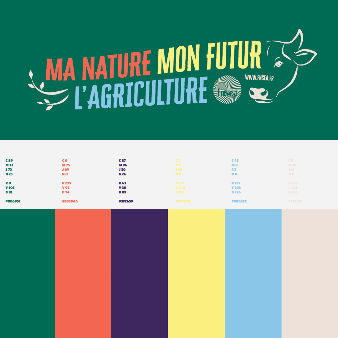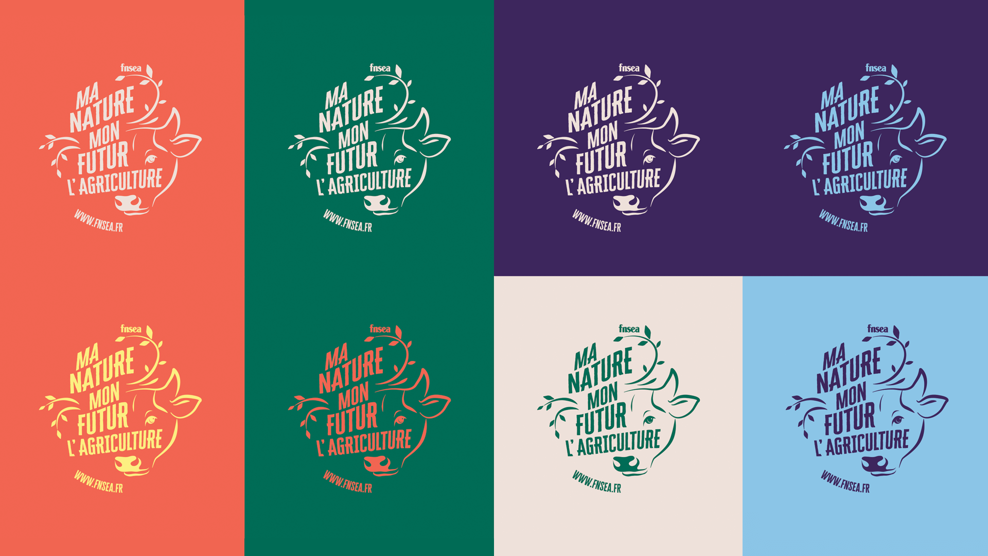 Gagner en notoriété en tant que marque FNSEA qui fait la promotion d’une agriculture stratégique, moderne et innovante et de métiers d’une grande diversité au caractère essentiel. L'utilisation d'un pattern déclinable sur un maximum de supports, représentant les activités de la FNSEA sur un ton coloré et vivant est préconisé par Becom. À cela s'ajoute un bloc marque de la campagne pour une reconnaissance immédiate.